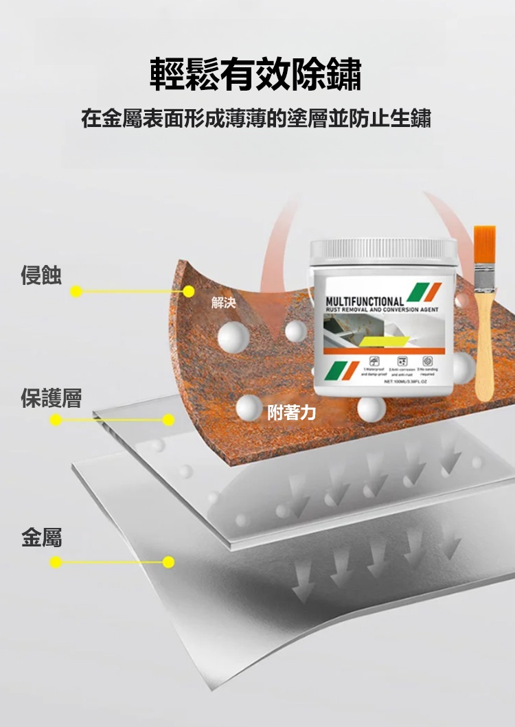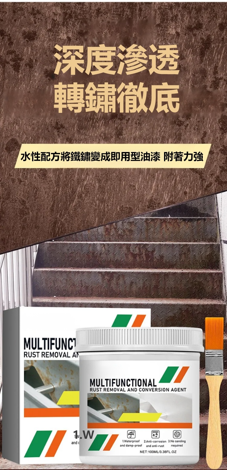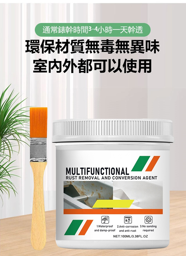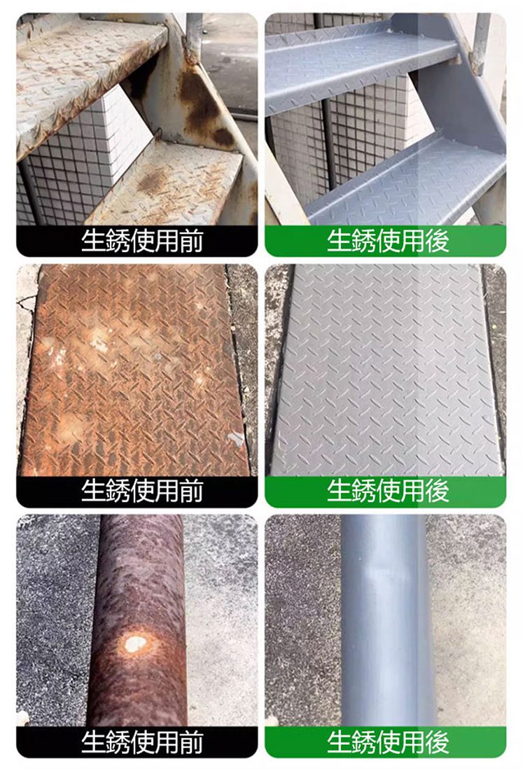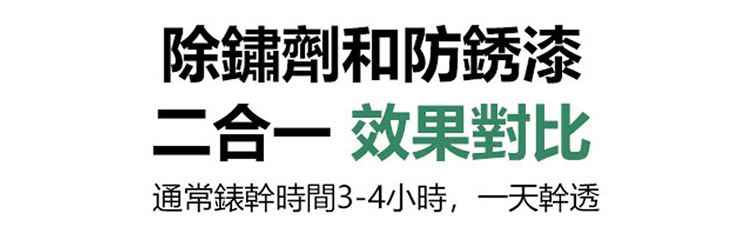 鐵銹轉化劑,除銹固銹,施工簡單,免打磨,無汙染無異味,省時省力省人工,適用彩鋼瓦/鋼筋/鐵欄桿/貨車車廂等金屬,多種顏色